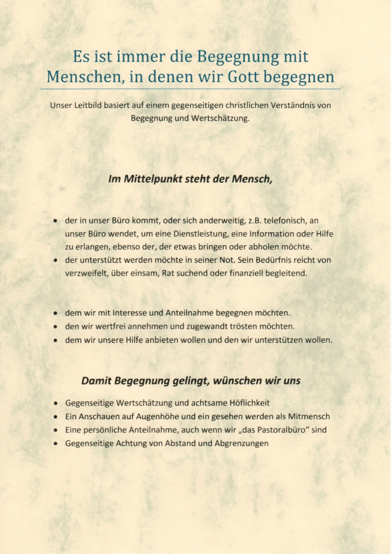 Unser Leitbild basiert auf einem gegenseitigen christlichen Verständnis von Begegnung und Wertschätzung.