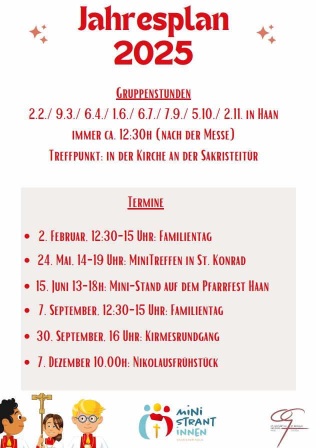 Die Katholische öffentliche Bibliothek (KöB) St. Nikolaus in Gruiten öffnet am Montag, 22.12.2025, das letzte Mal in diesem Jahr (16:30 – 18 Uhr). Danach öffnet sie erst wieder am Montag, 12.1.2026 (ebenfalls 16:30 – 18 Uhr).